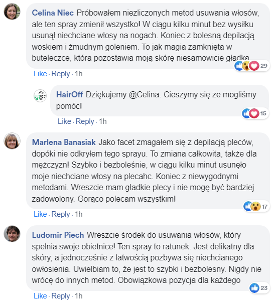 “Ten spray jest prosty i łatwy w użyciu, wystarczy tylko spryskać i wytrzeć. Bezboleśnie i bez podrażnień! Miałam już dość tradycyjnego golenia, ten spray to wszystko czego potrzebuję!"